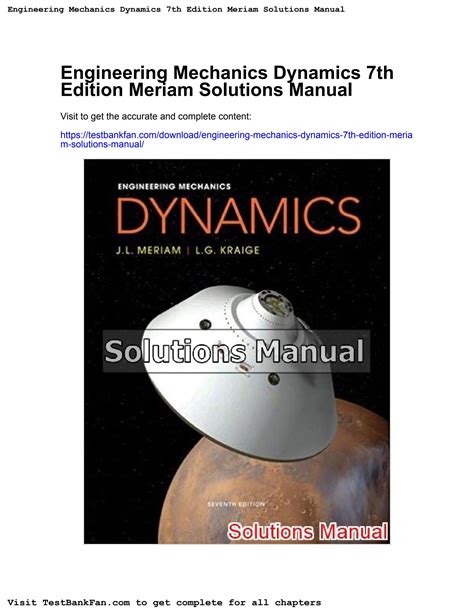 Currently you are looking with regard to an Dynamics Meriam 7th Edition Solution Manual example of which we provide here inside some form of document formats like as PDF, Doc, Power Point, and in addition images of which will make it simpler for you to create an Dynamics Meriam 7th Edition Solution Manual yourself. For a more clear look, you may open some examples below. All of the good examples about Dynamics Meriam 7th Edition Solution Manual on this web site, we get from several sources so you can create a better file of your own.When the search you obtain here does not match what you are searching for, please use the lookup feature that we possess provided here. You are usually free to download something that we provide in this article, investment decision you won't cost you the slightest.