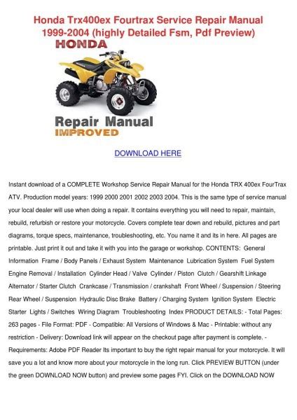 Currently you are looking with regard to an 2001 Honda 400ex Service Manual Free example of which we provide here in some type of document formats such as PDF, Doc, Strength Point, as well as images of which will make it simpler for you to create an 2001 Honda 400ex Service Manual Free yourself. For a more clear look, you may open several examples below. Each of the examples about 2001 Honda 400ex Service Manual Free about this web site, we get from a number of sources so you could create a better file of your own.In case the search you acquire here does not complement what you are searching for, please use the lookup feature that we have provided here. You will be free to download something that we provide here, it will not cost you typically the slightest.